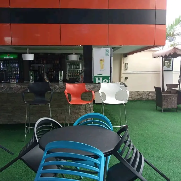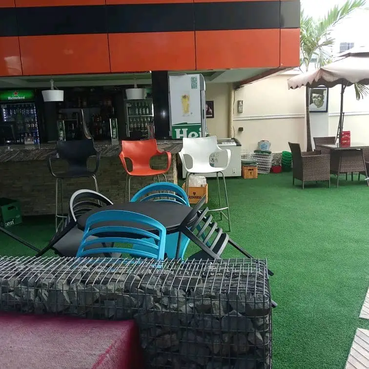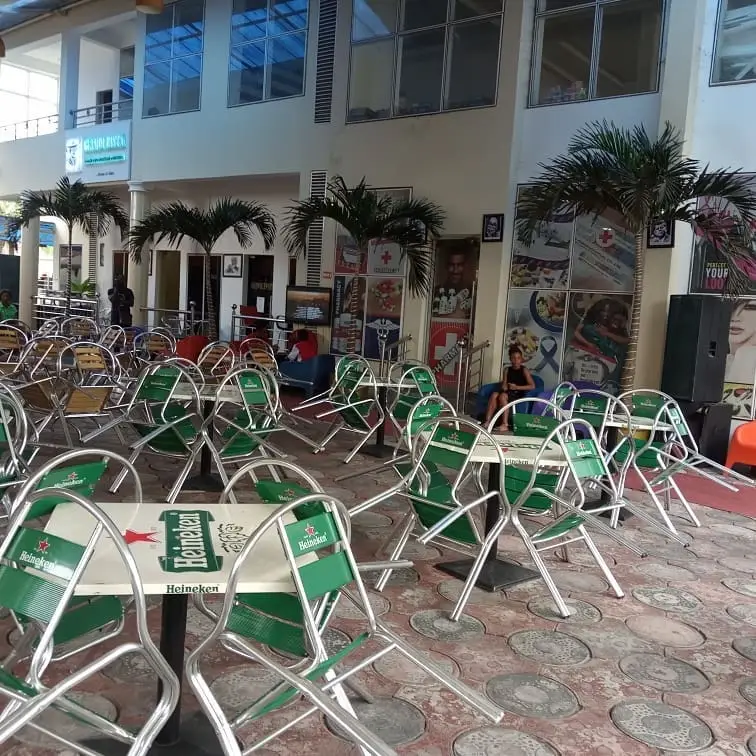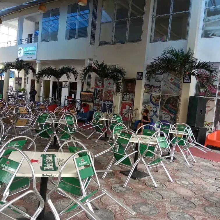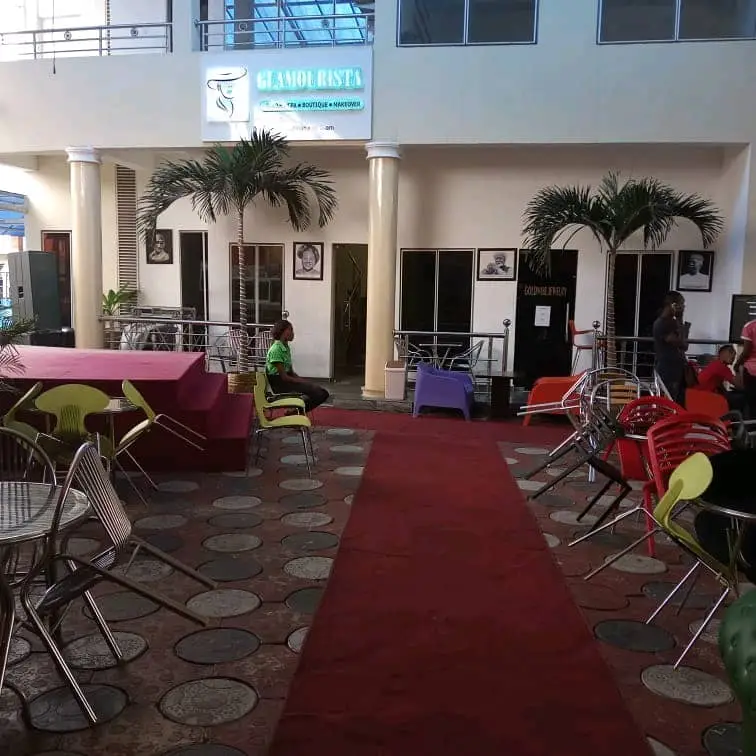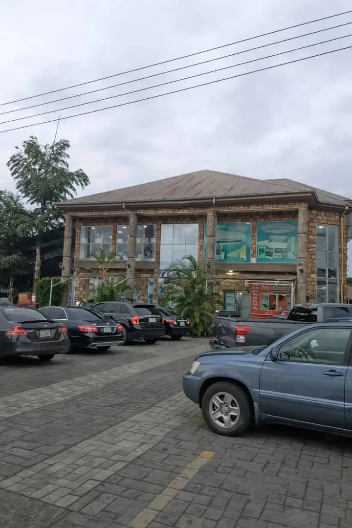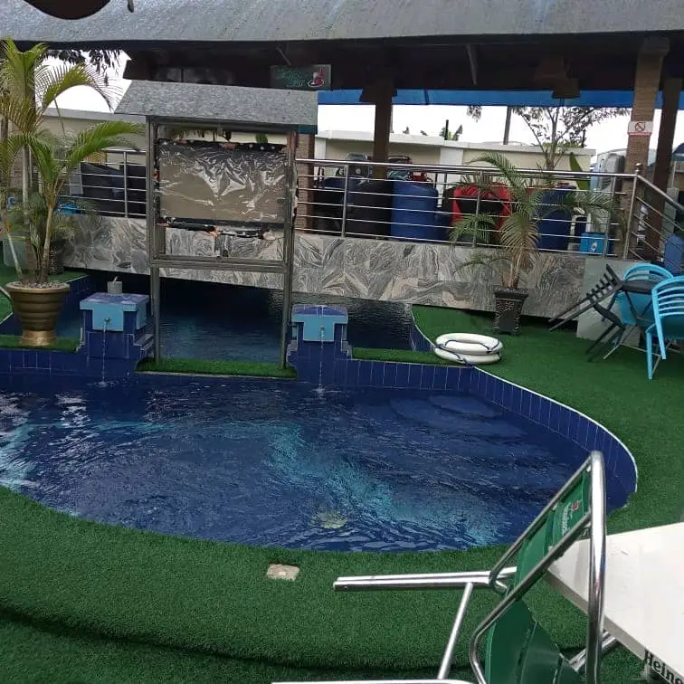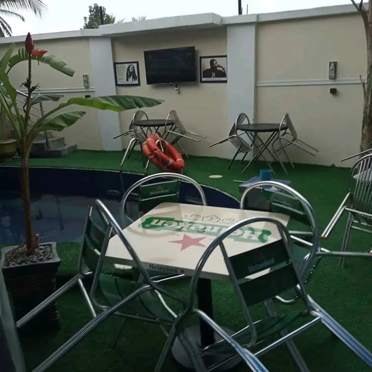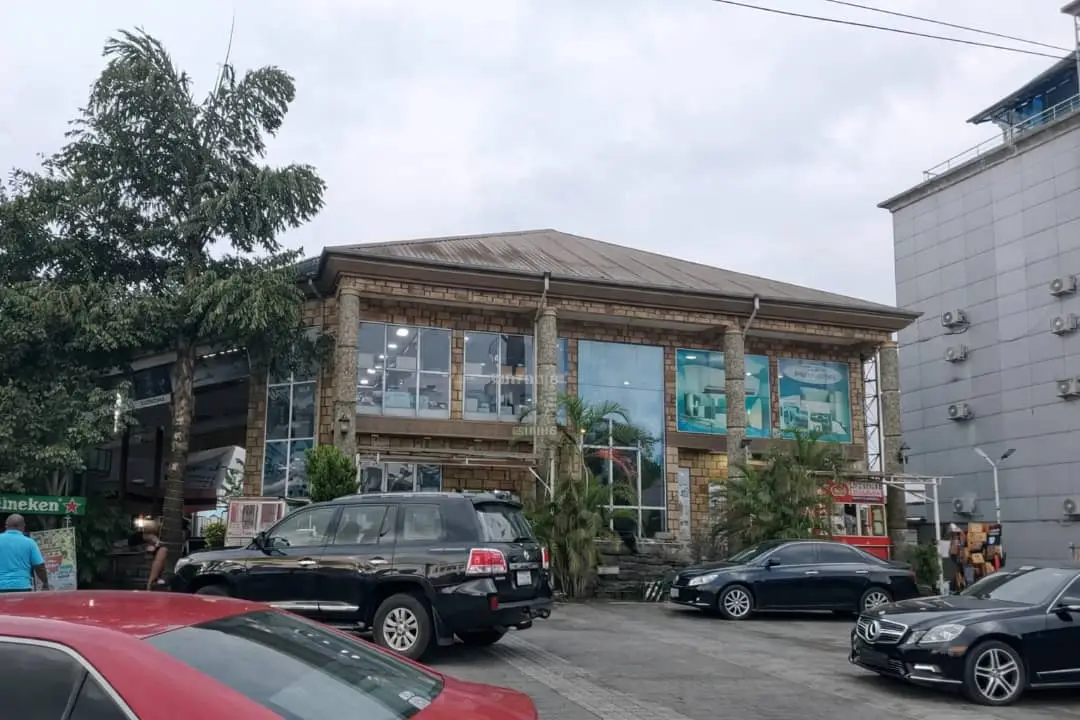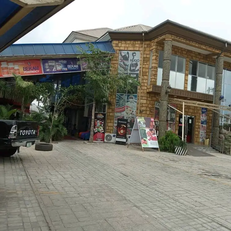 - Features: In a built up area, 5 offices, open space (ground floor/first floor), has a bar, restaurant, swimming pool, 3 shops, 1 double shop, standard spacious bedroom, spacious chairmans office, perfectly finished, on major road, parking space for 25 cars, 6 bathrooms, 8 toilets, 1000KVA dedicated transformer